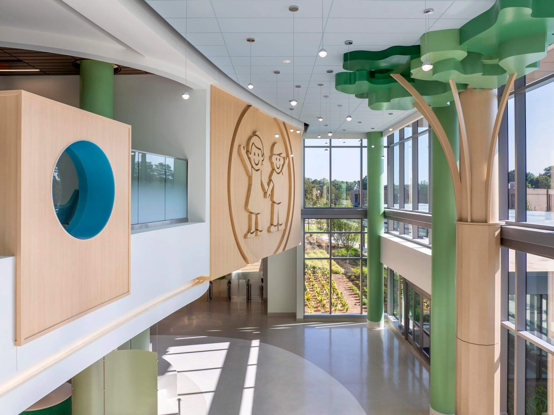 That shift matters because families do not experience a hospital one department at a time. They experience it as a journey. From the moment they arrive, they are looking for ways to help them feel oriented and reassured they are cared for. A strong master plan helps align theming, wayfinding, technology, materials and operational needs into one experience.
